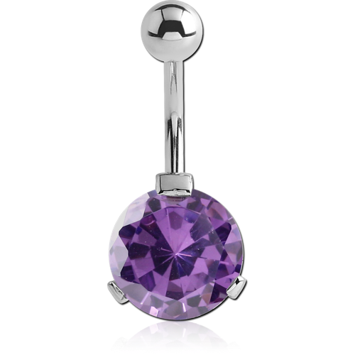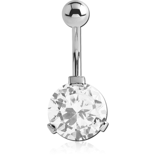 SURGICAL STEEL GRADE 316L ROUND PRONG SET 12MM CZ JEWELED NAVEL BANANA