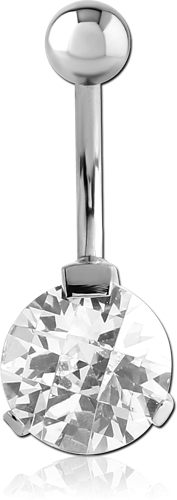 SURGICAL STEEL GRADE 316L ROUND PRONG SET 10MM CZ JEWELED NAVEL BANANA