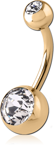 GOLD PVD 18K COATED SURGICAL STEEL GRADE 316L DOUBLE PREMIUM CRYSTALS JEWELED NAVEL BANANA