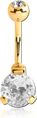 GOLD PVD 18K COATED SURGICAL STEEL GRADE 316L ROUND 8MM CZ DOUBLE PREMIUM CRYSTAL JEWELED BANANA