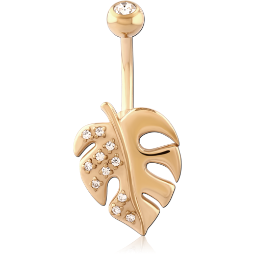 GOLD PVD 18K COATED SURGICAL STEEL GRADE 316L DOUBLE JEWELED NAVEL BANANA
