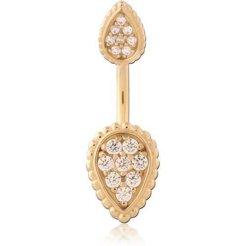 GOLD PVD 18K COATED SURGICAL STEEL GRADE 316L DOUBLE JEWELED NAVEL BANANA