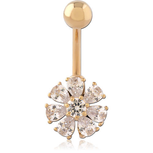 GOLD PVD 18K COATED SURGICAL STEEL GRADE 316L JEWELED NAVEL BANANA