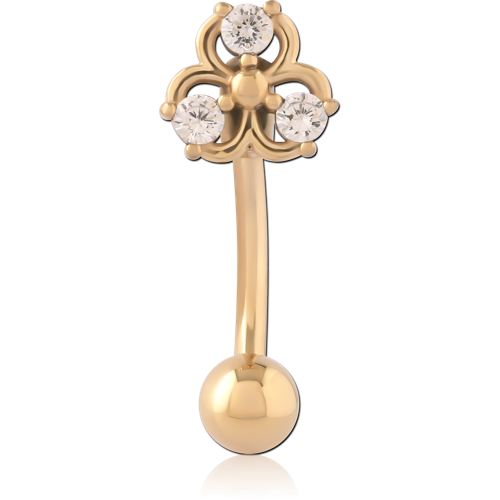 GOLD PVD 18K COATED SURGICAL STEEL GRADE 316L JEWELED NAVEL BANANA