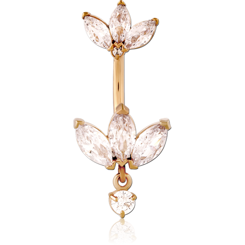 GOLD PVD 18K COATED SURGICAL STEEL GRADE 316L INTERNALLY THREADED DOUBLE JEWELED NAVEL BANANA