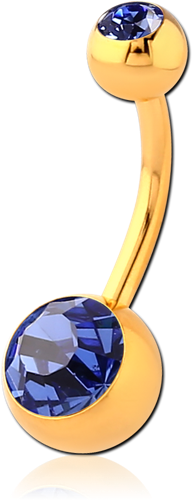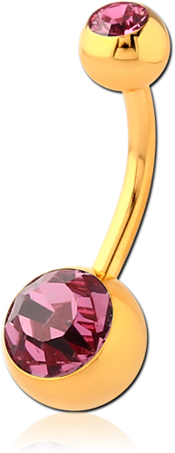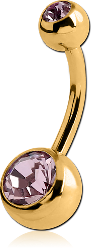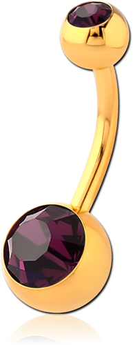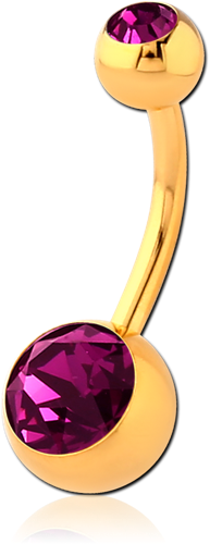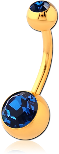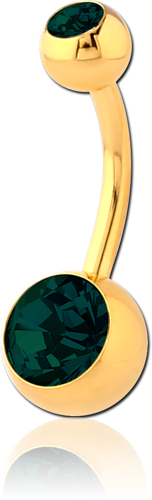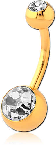 GOLD PVD COATED SURGICAL STEEL GRADE 316L DOUBLE PREMIUM CRYSTAL JEWELED NAVEL BANANA