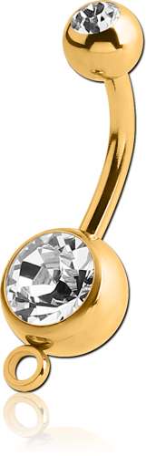 GOLD PVD COATED SURGICAL STEEL GRADE 316L DOUBLE JEWELED NAVEL BANANA WITH HOOP