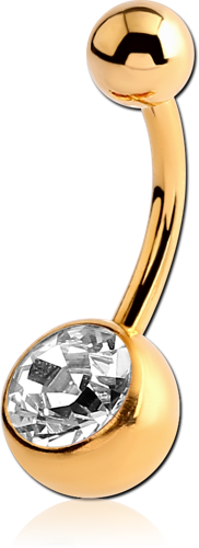 GOLD PVD COATED SURGICAL STEEL GRADE 316L OPTIMA CRYSTAL JEWELED NAVEL BANANA
