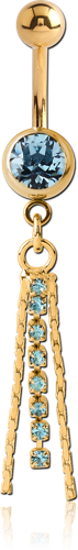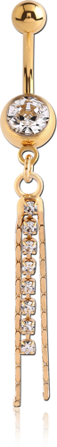 GOLD PVD COATED SURGICAL STEEL GRADE 316L JEWELED NAVEL BANANA WITH JEWELED DANGLE CHARM