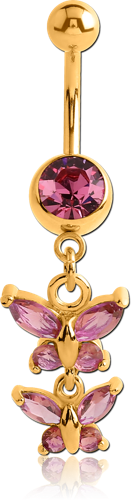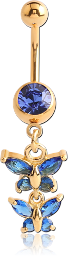 GOLD PVD COATED SURGICAL STEEL GRADE 316L JEWELED NAVEL BANANA WITH BUTTERFLY CHARM
