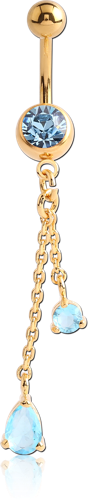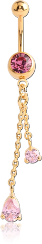 GOLD PVD COATED SURGICAL STEEL GRADE 316L JEWELED NAVEL BANANA WITH JEWELED DANGLE CHARM