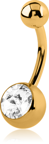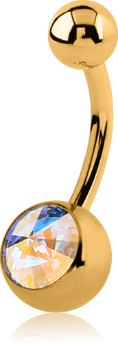 GOLD PVD COATED SURGICAL STEEL GRADE 316L SPIKEY PREMIUM CRYSTAL JEWELED NAVEL BANANA