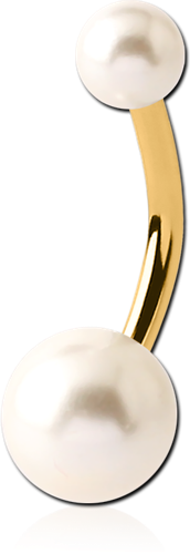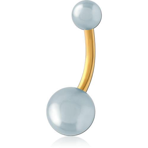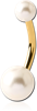 GOLD PVD COATED SURGICAL STEEL GRADE 316L DOUBLE SYNTHETIC PEARL BALL NAVEL BANANA