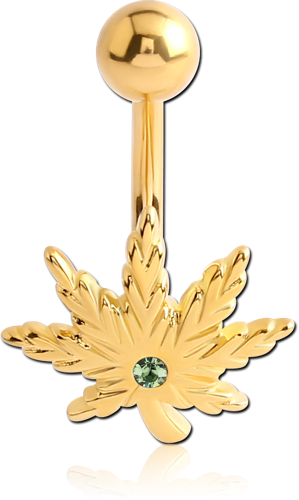 GOLD PLATED BASE METAL JEWELED POT LEAF NAVEL BANANA