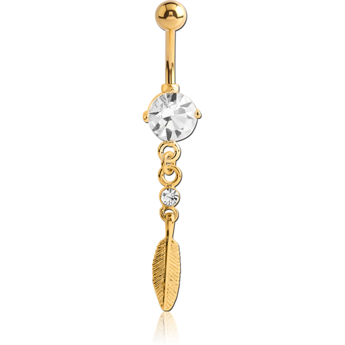 GOLD PLATED BASE METAL PREMIUM CRYSTAL JEWELED NAVEL BANANA WITH FEATHER CHARM