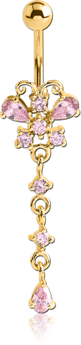 GOLD PLATED BASE METAL JEWELED BUTTERFLY NAVEL BANANA