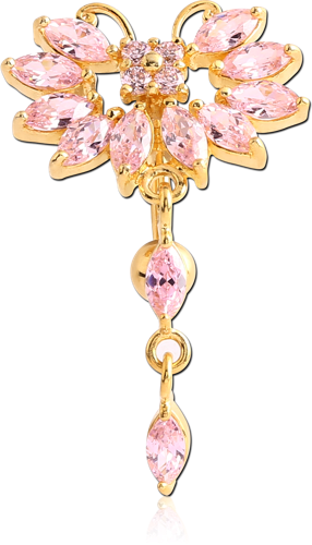 GOLD PLATED BASE METAL REVERSE JEWELED NAVEL BANANA