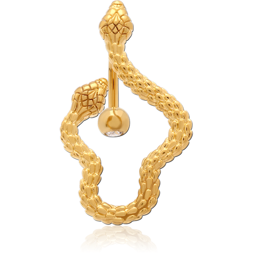 GOLD PVD COATED BASE METAL DOUBLE JEWELED NAVEL BANANA
