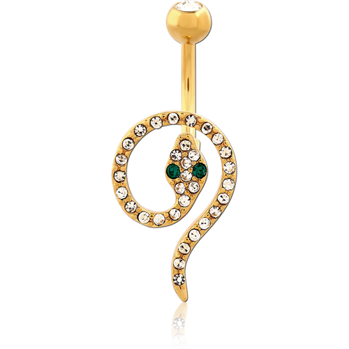 GOLD PVD COATED BASE METAL DOUBLE JEWELED NAVEL BANANA