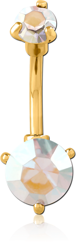 GOLD PVD COATED SURGICAL STEEL GRADE 316L DOUBLE JEWELED NAVEL BANANA
