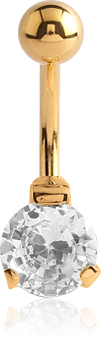 GOLD PVD COATED SURGICAL STEEL GRADE 316L ROUND PRONG SET 8MM CZ JEWELED NAVEL BANANA