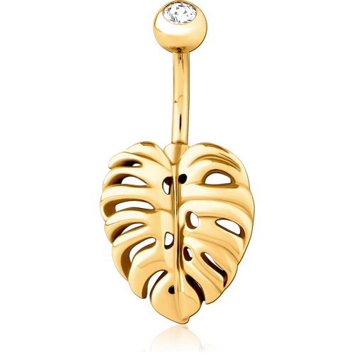 GOLD PVD COATED SURGICAL STEEL GRADE 316L JEWELED NAVEL BANANA