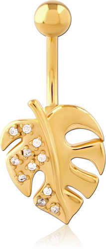 GOLD PVD COATED SURGICAL STEEL GRADE 316L JEWELED NAVEL BANANA