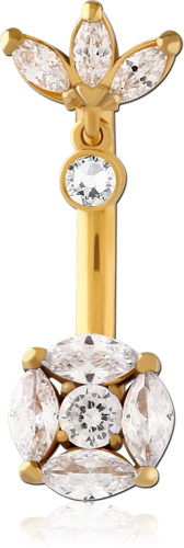 GOLD PVD COATED SURGICAL STEEL GRADE 316L INTERNALLY THREADED DOUBLE JEWELED NAVEL BANANA