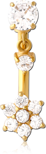 GOLD PVD COATED SURGICAL STEEL GRADE 316L INTERNALLY THREADED DOUBLE JEWELED NAVEL BANANA