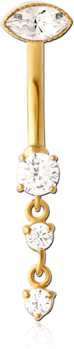 GOLD PVD COATED SURGICAL STEEL GRADE 316L INTERNALLY THREADED DOUBLE JEWELED NAVEL BANANA