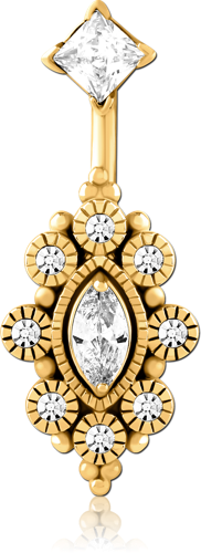 GOLD PVD COATED SURGICAL STEEL GRADE 316L INTERNALLY THREADED DOUBLE JEWELED NAVEL BANANA