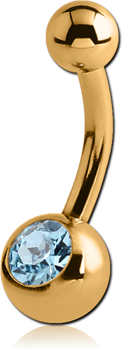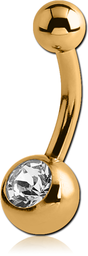 GOLD PVD COATED SURGICAL STEEL GRADE 316L PREMIUM CRYSTAL JEWELED MINI NAVEL BANANA