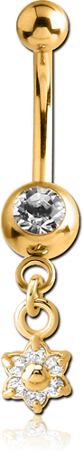 GOLD PVD COATED SURGICAL STEEL GRADE 316L JEWELED NAVEL BANANA WITH JEWELED CHARM