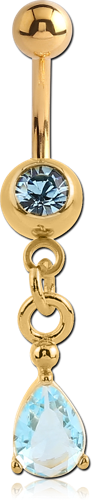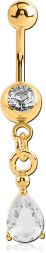 GOLD PVD COATED SURGICAL STEEL GRADE 316L PREMIUM CRYSTAL JEWELED MINI NAVEL BANANA WITH PRONG SET PEAR CHARM