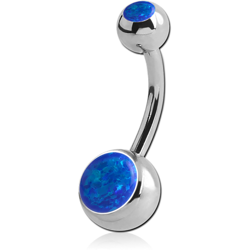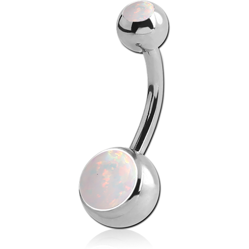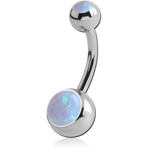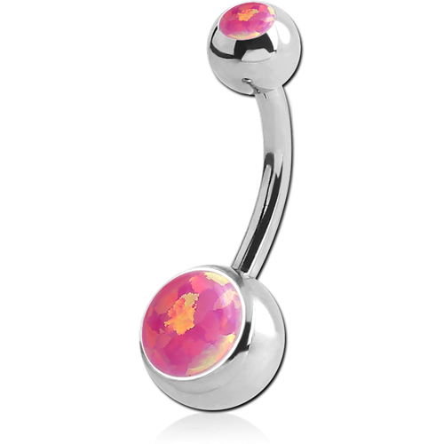 SURGICAL STEEL GRADE 316L INTERNALLY THREADED DOUBLE JEWELED NAVEL BANANA WITH ORGANIC SYNTHETIC OPALS