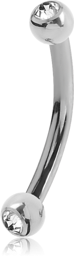 SURGICAL STEEL GRADE 316L INTERNALLY THREADED DOUBLE JEWELED CURVED BARBELL