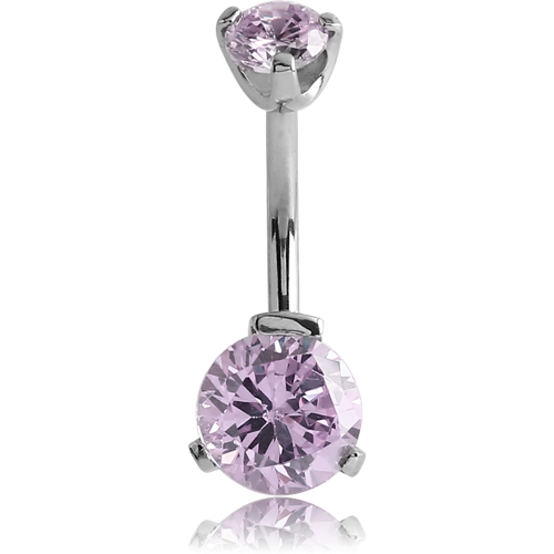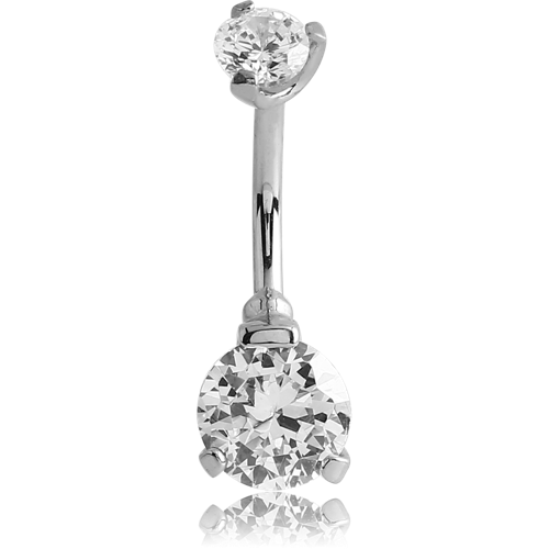 SURGICAL STEEL GRADE 316L INTERNALLY THREADED ROUND PRONG SET DOUBLE JEWELED NAVEL BANANA