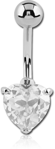 SURGICAL STEEL GRADE 316L INTERNALLY THREADED PRONG SET HEART JEWELED NAVEL BANANA