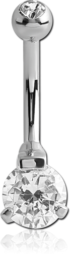 SURGICAL STEEL GRADE 316L INTERNALLY THREADED DOUBLE JEWELED NAVEL BANANA-BOTTOM ROUND PRONG SET