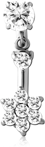 SURGICAL STEEL GRADE 316L INTERNALLY THREADED DOUBLE JEWELED NAVEL BANANA