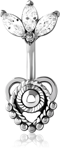 SURGICAL STEEL GRADE 316L INTERNALLY THREADED DOUBLE JEWELED NAVEL BANANA