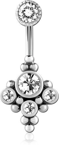 SURGICAL STEEL GRADE 316L INTERNALLY THREADED DOUBLE JEWELED NAVEL BANANA