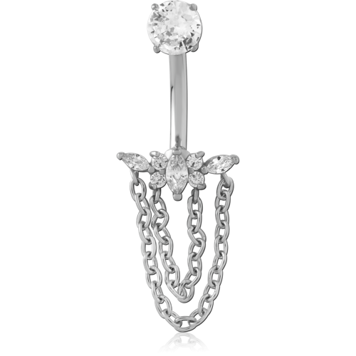 SURGICAL STEEL GRADE 316L INTERNALLY THREADED DOUBLE JEWELED NAVEL BANANA