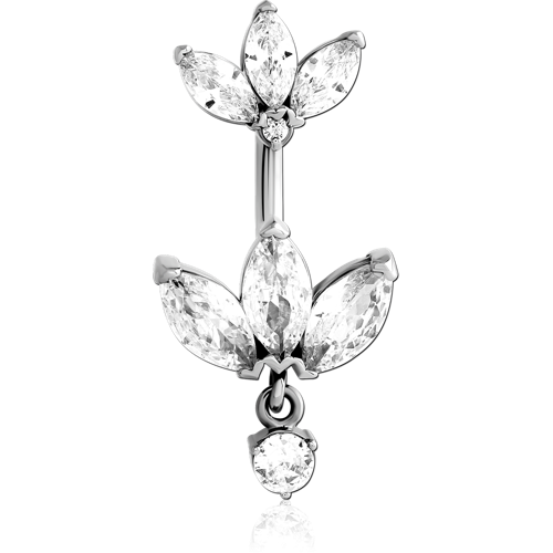 SURGICAL STEEL GRADE 316L INTERNALLY THREADED DOUBLE JEWELED NAVEL BANANA