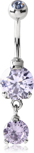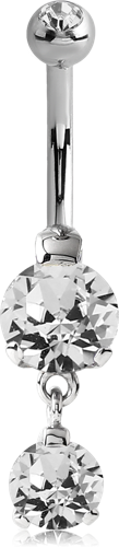 SURGICAL STEEL GRADE 316L INTERNALLY THREADED DOUBLE JEWELED ROUND 8 MM NAVEL BANANA WITH 6 MM JEWELED CHARM