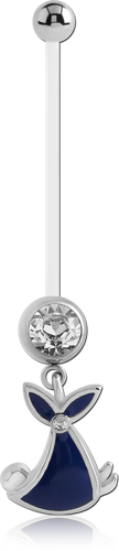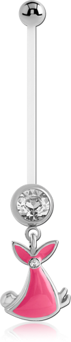 : SYNTHETIC FLUOROPOLYMER PIN WITH SURGICAL STEEL GRADE 316L BALL AND RHODIUM PLATED CHARM