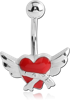 RHODIUM PLATED BASE METALD NAVEL BANANA - WINGED HEART