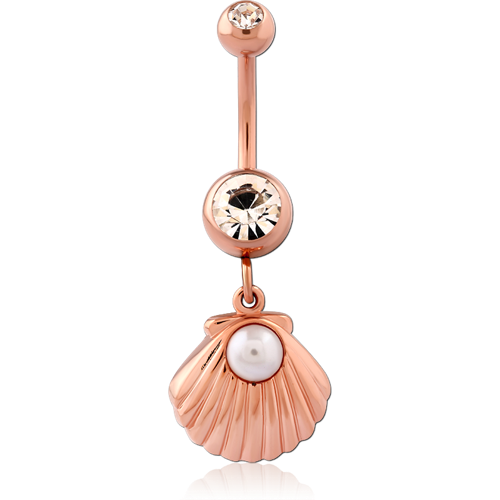 ROSE GOLD PVD COATED SURGICAL STEEL GRADE 316L DOUBLE JEWELED NAVEL BANANA WITH CHARM