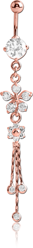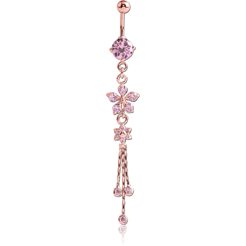 ROSE GOLD PLATED BASE METAL JEWELED FLOWER NAVEL BANANA WITH DANGLE CHARMS