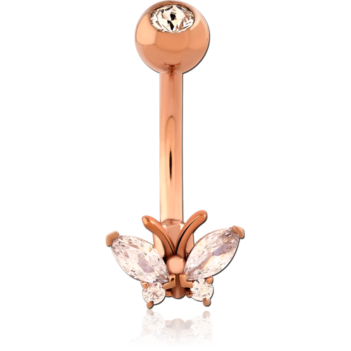 ROSE GOLD PVD COATED SURGICAL STEEL GRADE 316L DOUBLE JEWELED NAVEL BANANA